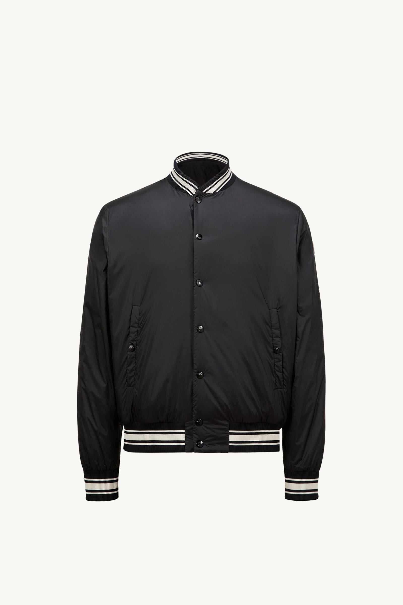 A nod to letterman jackets, the Bouchet is featured in a characteristic bomber shape with knit trims. Versatile at its core, the reversible down jacket features recycled lightweight nylon fabric on one side and classic cotton jersey on the other. The short puffer is finished by logo patches on each face, completing the warmer's varsity feel.